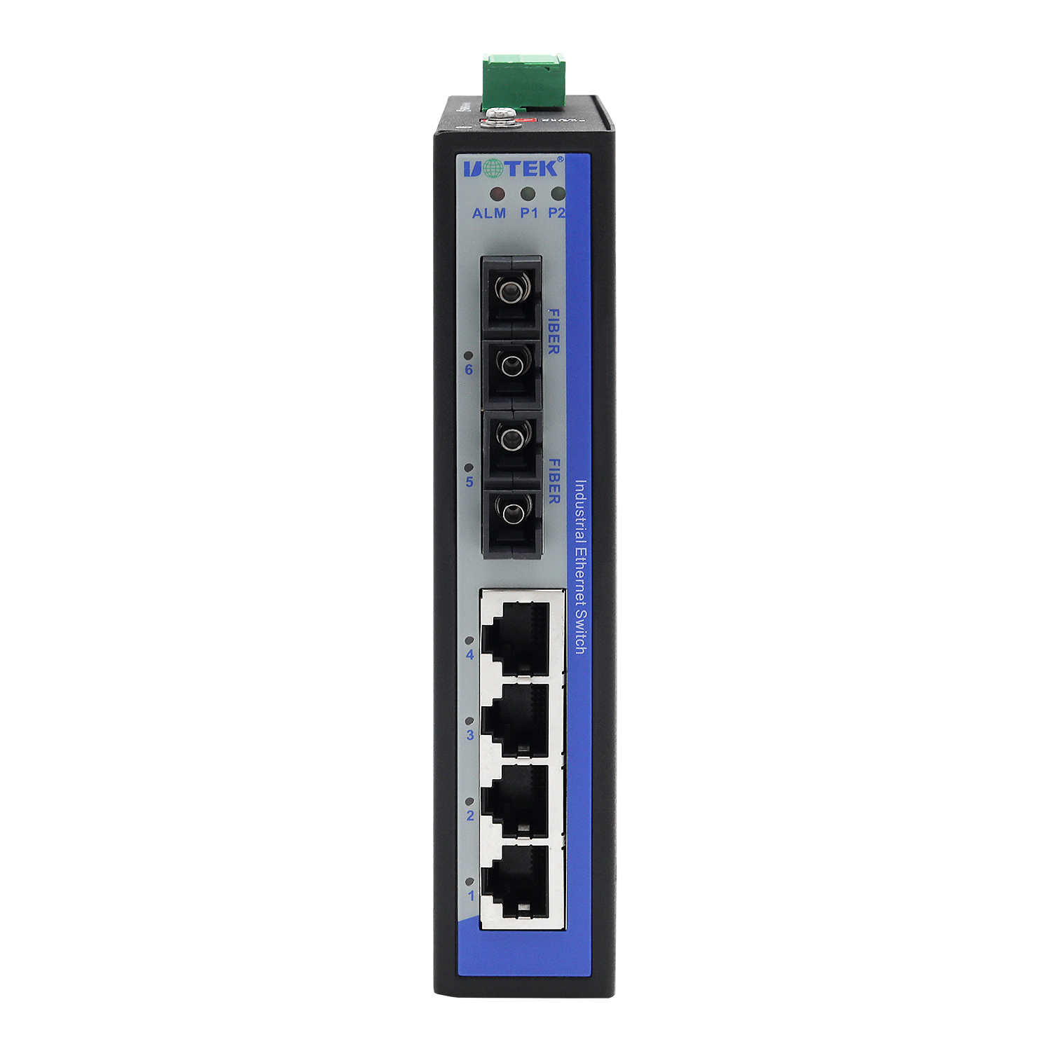 UT-6406GCA系列是非網管型全千兆以太網交換機,支持2路千兆光纖接口和4路千兆以太網端口,即插即用;該系列交換機采用低功耗、無風扇設計,確保無噪聲干擾,同時支持-40~75℃工作溫度和良好的EMC電磁兼容性能,保證在惡劣的工業環境中保持穩定的工作,為工廠自動化,智能交通,視頻監控等工業應用領域組建快速穩定的網絡終端接入網絡提供安全可靠的解決方案,該產品提供3種工作模式:延長、標準和VLAN模式,適應各種復雜的應用環境。